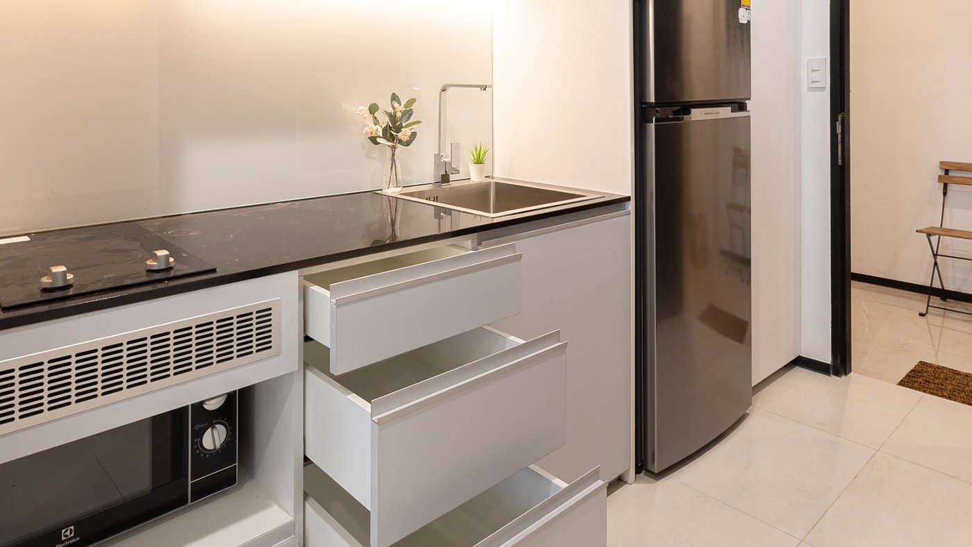 ชุดครัวสี solid ซึ่งทางเรามีสีให้เลือกหลากหลาย เจ้าของบ้านสามารถเลือกสีได้ตามสไตล์ที่ต้องการ โดยสามารถใช้มากกว่า 1 สีในชุดเดียวกัน เป็นการสร้างชุดครัวในแบบที่เจ้าของบ้านต้องการ และไม่เหมือนใครได้ทั้งสไตล์ modern และทั้งสไตล์ที่ให้ความอบอุ่น ขึ้นอยู่กับ shade สีที่เลือกใช้ โดยทางเราจะมีทีม designer คอยให้คำแนะนำตลอดการวางแบบชุดครัว